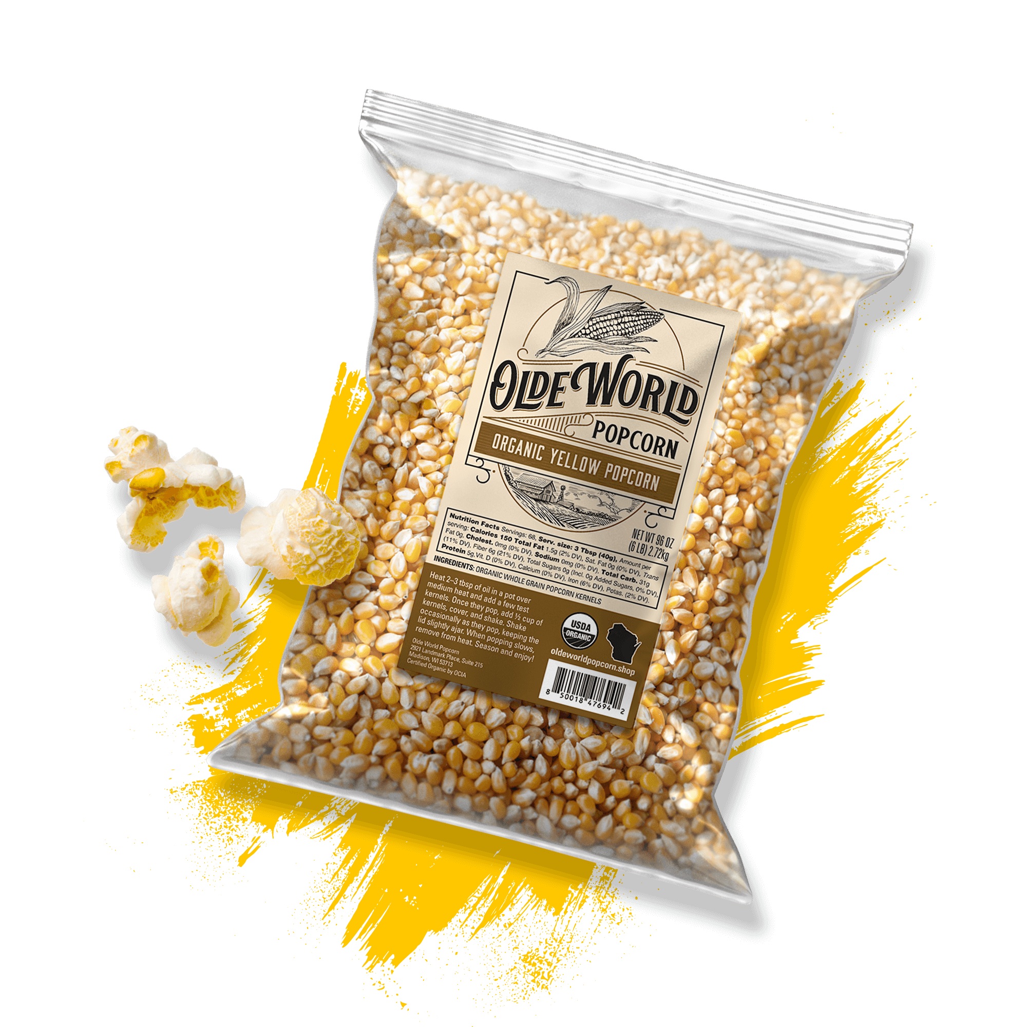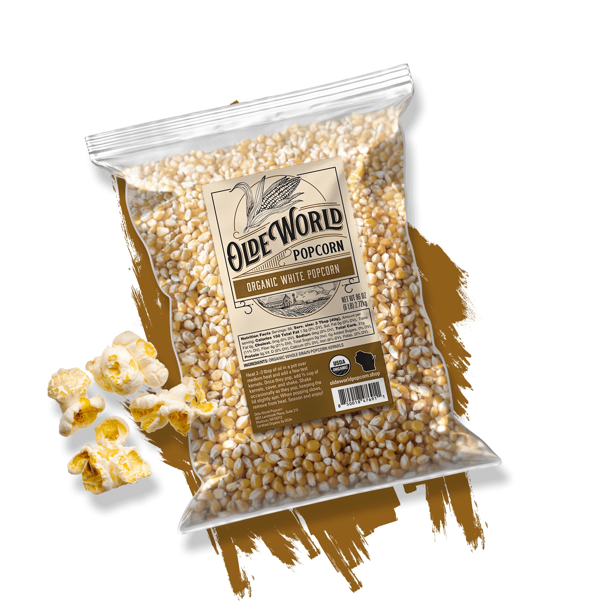 Enjoy the ultimate popcorn experience with OldeWorld Popcorn Organic White and Yellow Gourmet Popcorn Kernels. Whether you prefer the light, delicate flavor of white popcorn or the traditional, corny taste of yellow popcorn, both deliver wholesome goodness you can trust. Grown without synthetic pesticides or GMOs, our popcorn is 100% whole grain, naturally gluten-free, and perfect for movie nights, game nights, or everyday healthy snacking.
